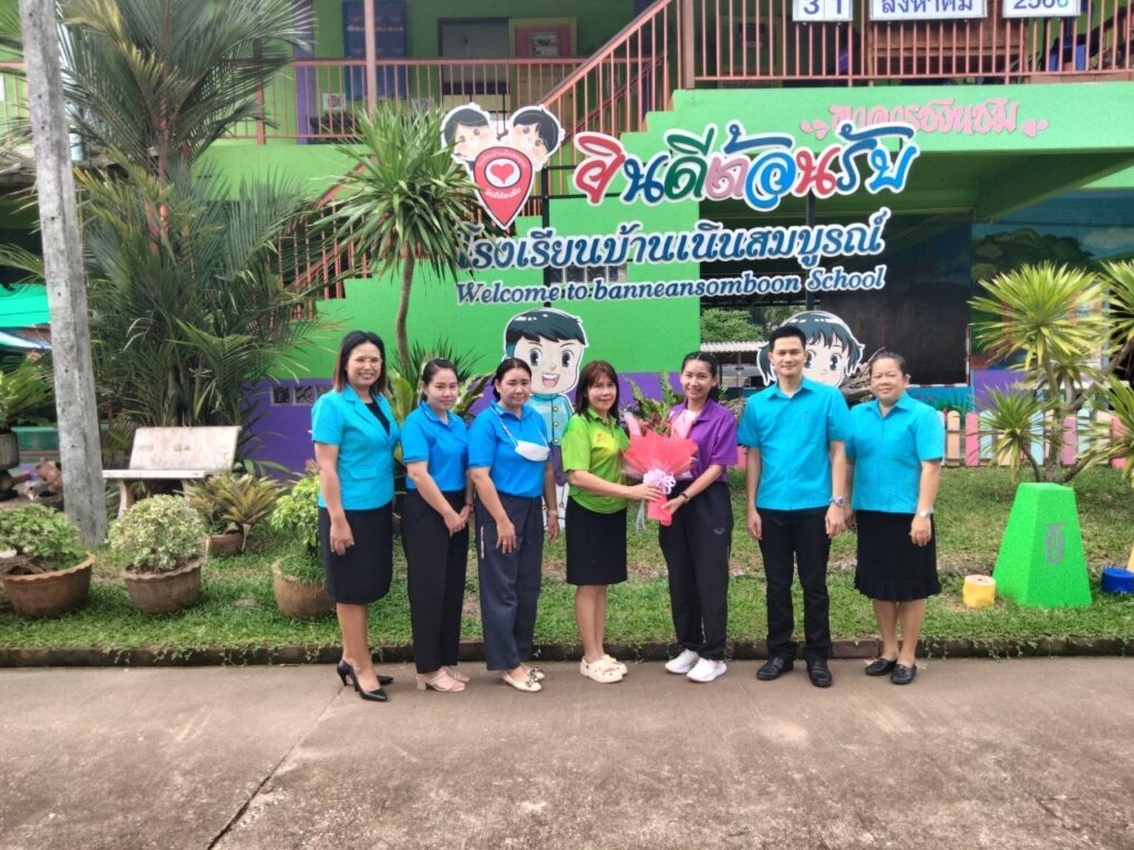 วันที่ 30 สิงหาคม 2566 โรงเรียนบ้านเนินสมบูรณ์ นำโดยนางสาวนิตยา สมวนาพานิช ผู้อำนวยการโรงเรียนบ้านเนินสมบูรณ์ และคณะครู ร่วมต้อนรับและมอบดอกไม้พร้อมทั้งแสดงความยินดีกับ คุณครูวิลาวัลย์ ภักดี ในโอกาสได้รับการบรรจุ และแต่งตั้งให้ดำรงตำแหน่ง ครูผู้ช่วย สาขาวิชาคณิตศาสตร์ ทางโรงเรียนบ้านเนินสมบูรณ์ขอต้อนรับด้วยความยินดียิ่ง